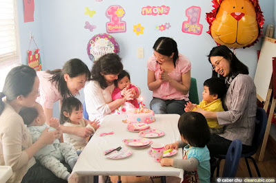This is the birthday girl, nicknamed 小小 (Little Little). I don't remember the real reason for her nickname but she really is very small compared to other children of her age so this nickname suits her perfectly. :) As you can see from the decors on the wall, 小小 turned 1.